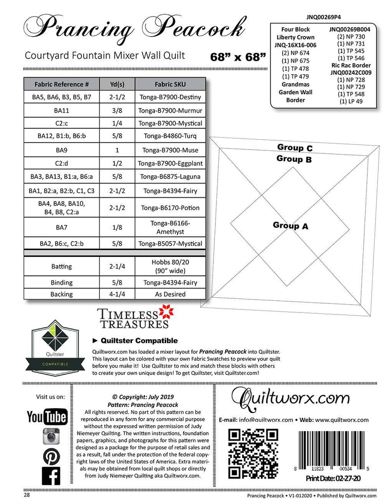 Prancing Peacock is a foundation paper pieced pattern. Size 68 x 68.