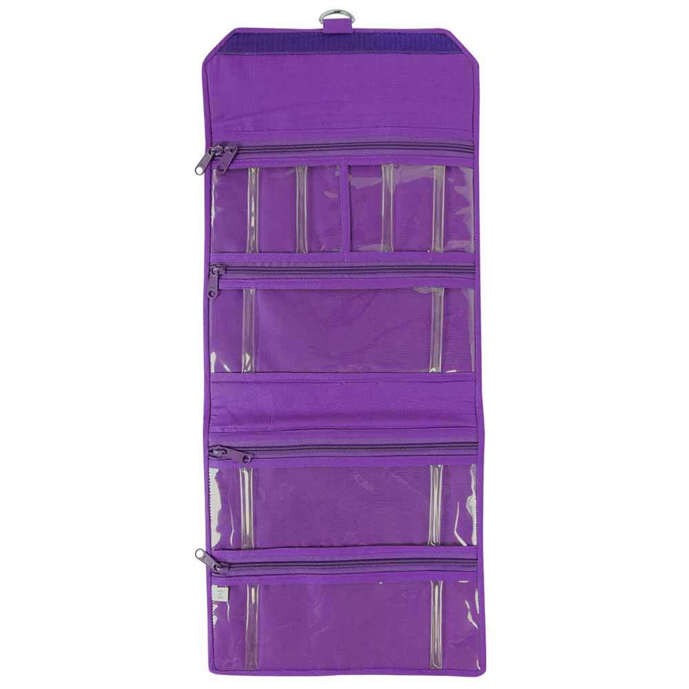 An Innovative and practical storage bag to organize your threads and carry your small projects to class, retreats and store at home. 4 horizontal see-through pockets internally and a large external pocket to store your small project. This quilted and lightweight organizer has a small handle to carry the bag or a hook to hang and display all your threads.