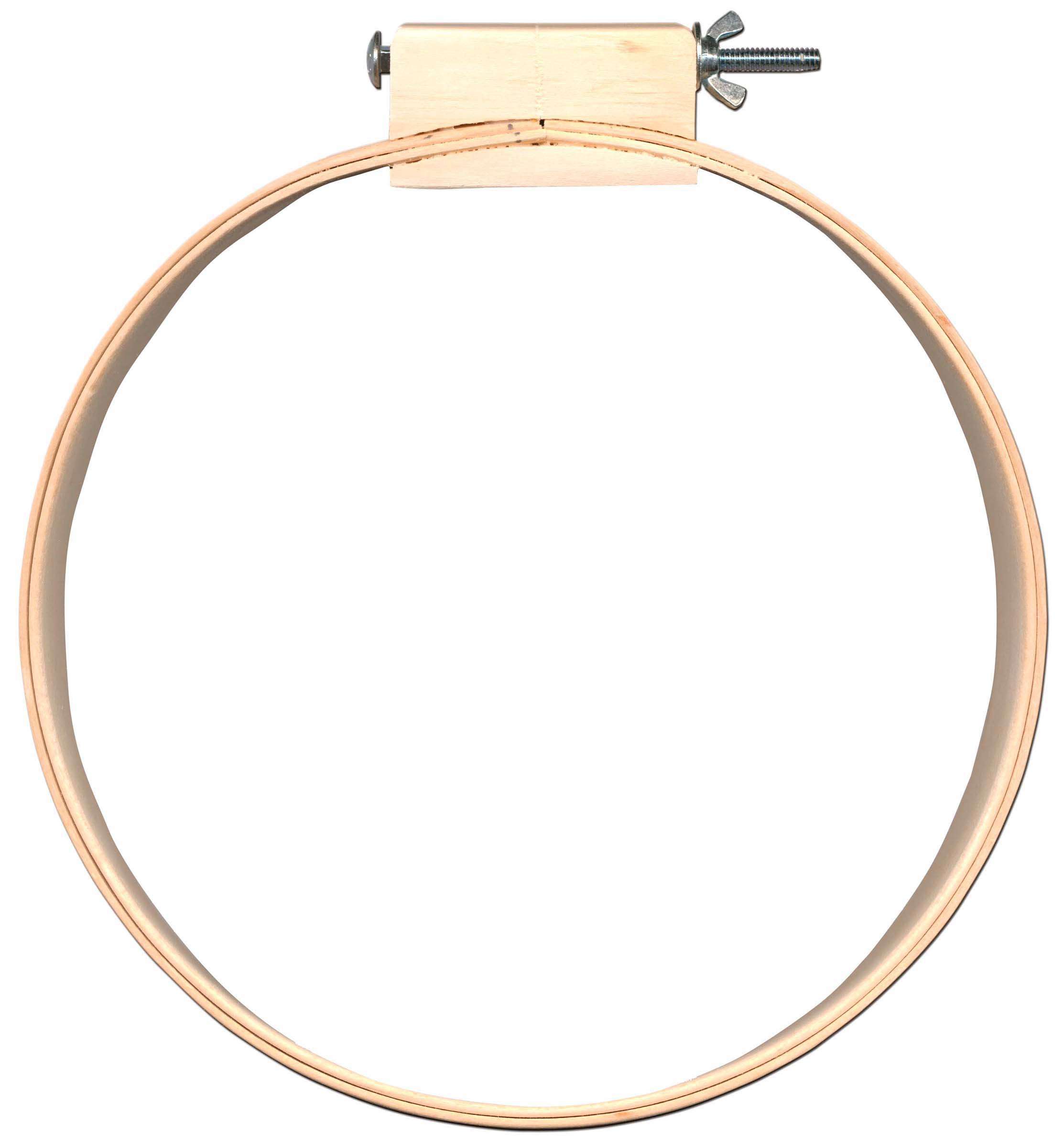 12" Round Quilt Hoop - This hoop has rounded edges and a smooth sanded finish. Made from Basswood with a solid wood block closure and a 4" plated set screw to hold your fabric taut. These hoops are 1 1/4" high, very lightweight and easy to quilt with.