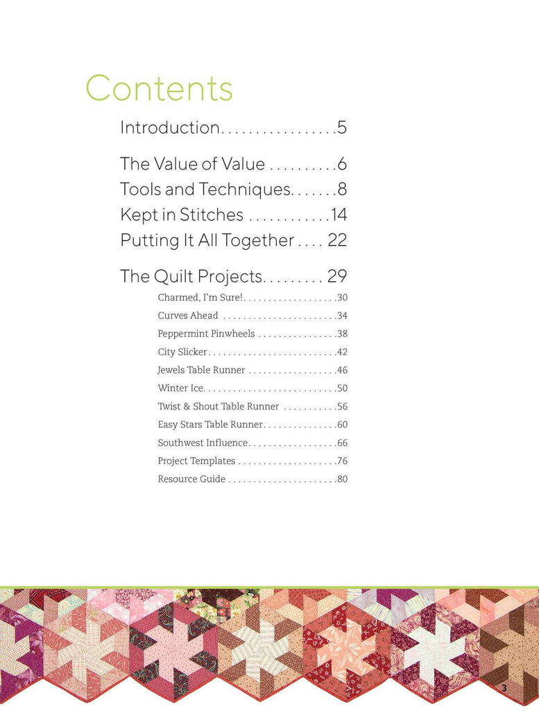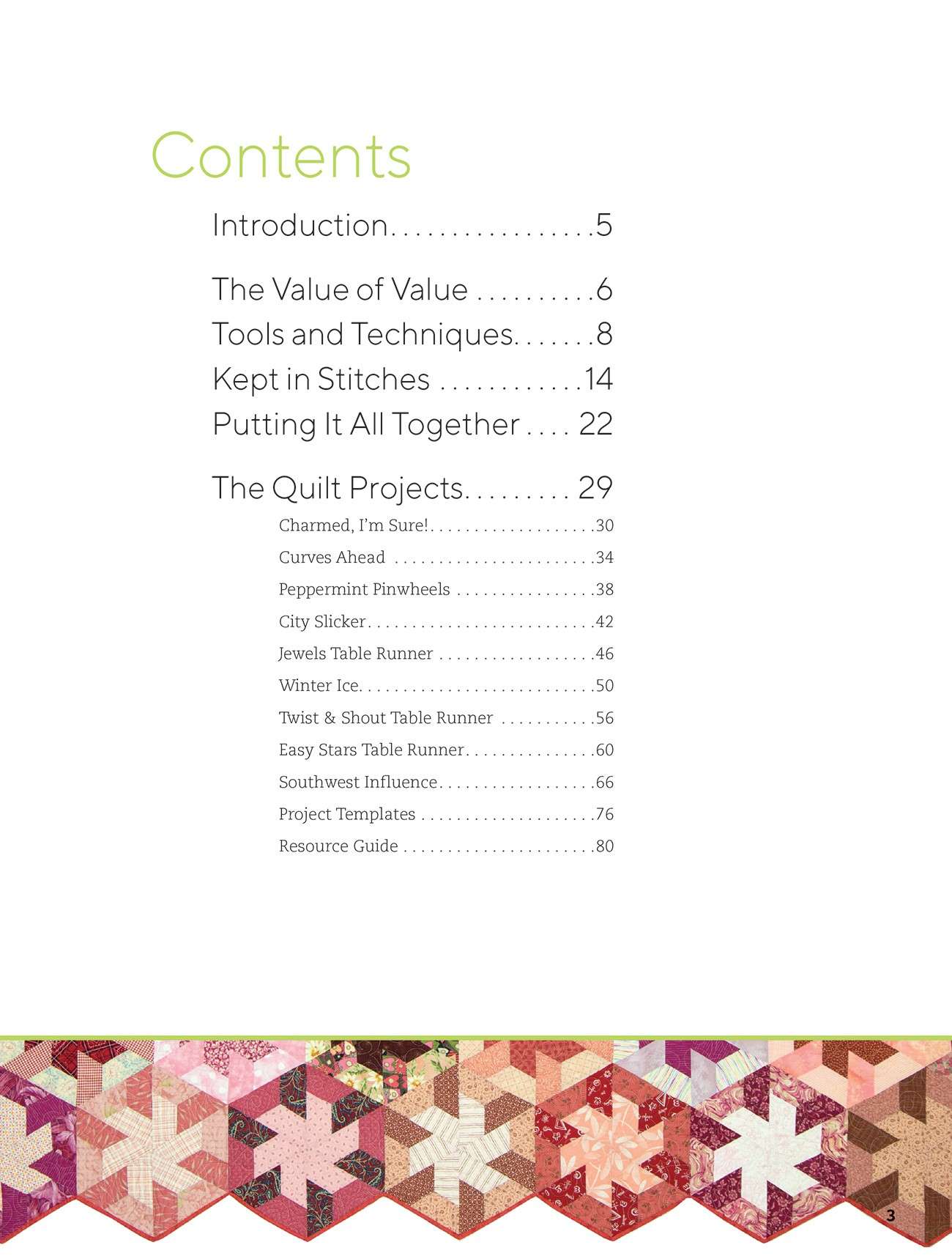 Sales tips: Design emphasis on color and value working together to create the illusion of depth and light. Comprehensive information about tools and techniques. Instructions on cutting with scissors and templates, rotary cutters and rulers, and die cutters. Guidance on both hand and machine piecing.