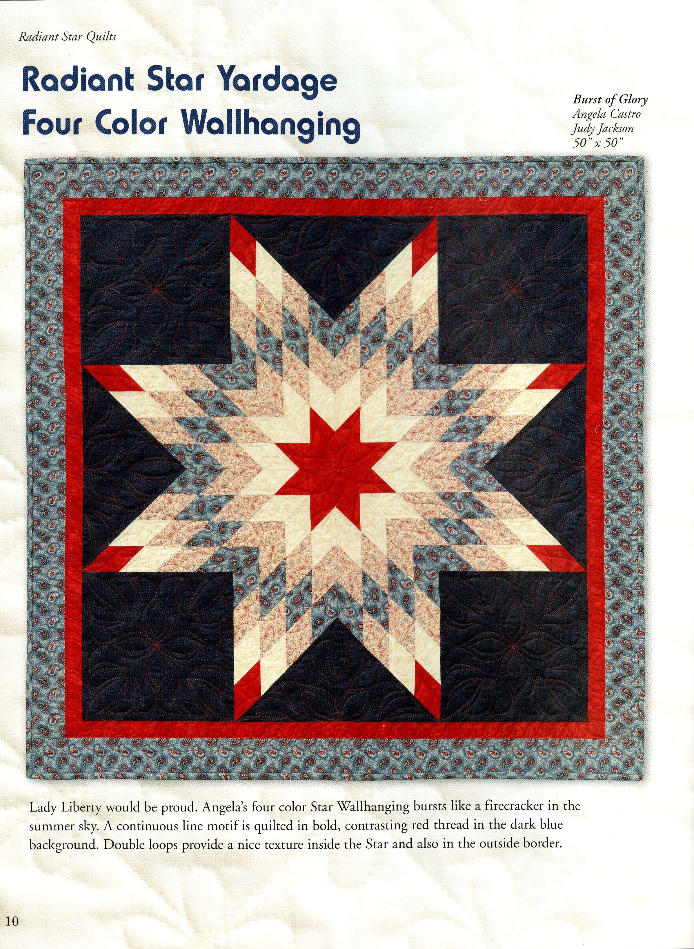 Radiant Star has traditionally been one of the most recognizable quilt patterns and until now among the most difficult. Eleanor Burns has done it again with detailed, no-fail directions, making this star easy, fast, and most of all fun to put together. Inspiring photos of a variety of quilts show some of the many colors and styles in which the Radiant Star can be made. The possibilities are endless. Updated methods and tools are used to create strikingly beautiful starbursts of intense color and diversity.