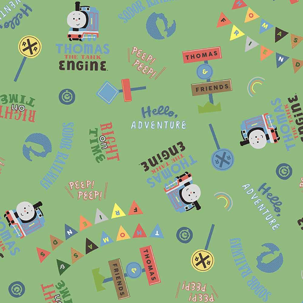 Riley Blake - Thomas & Friends - Sodor Railway - Railway Words - Green - Yardage