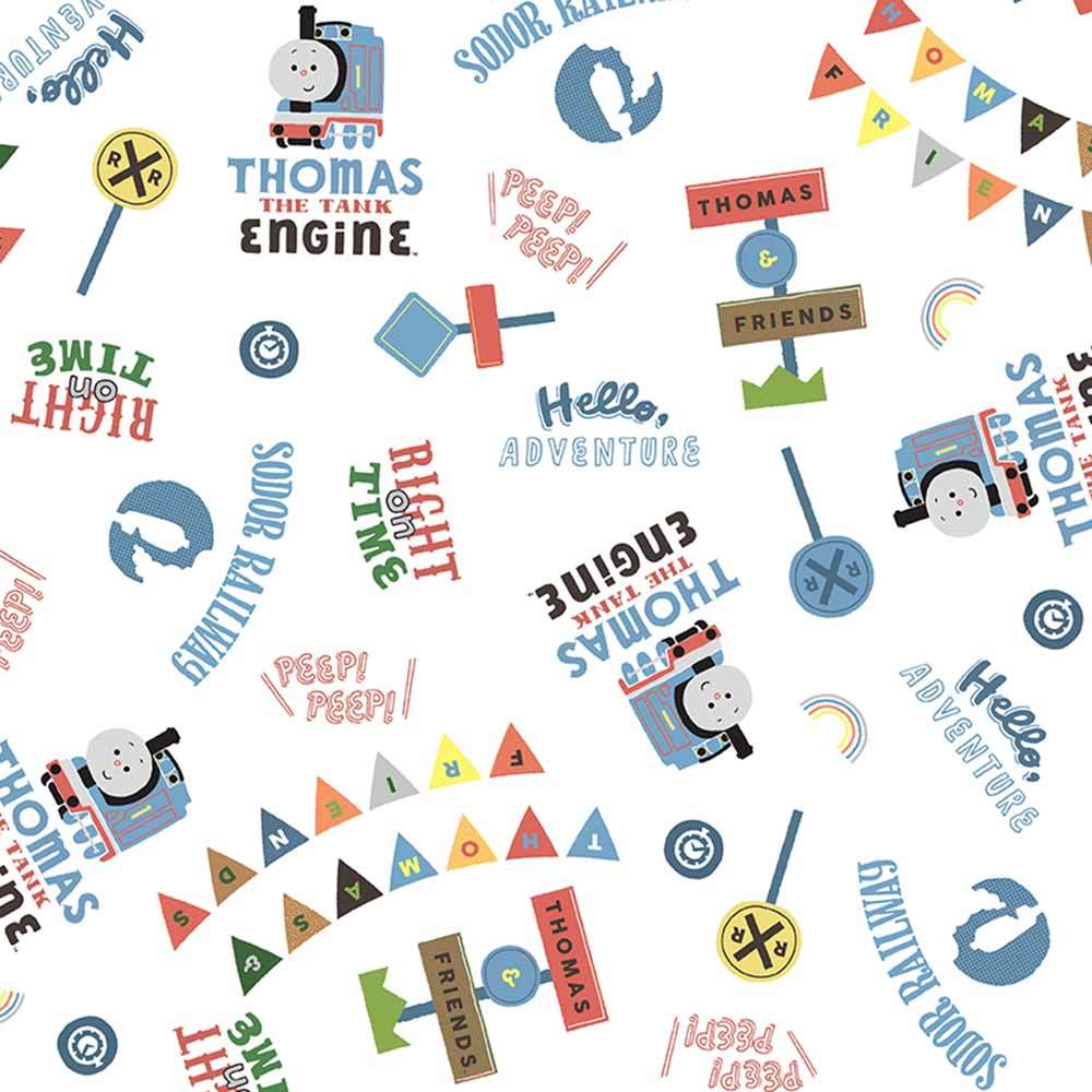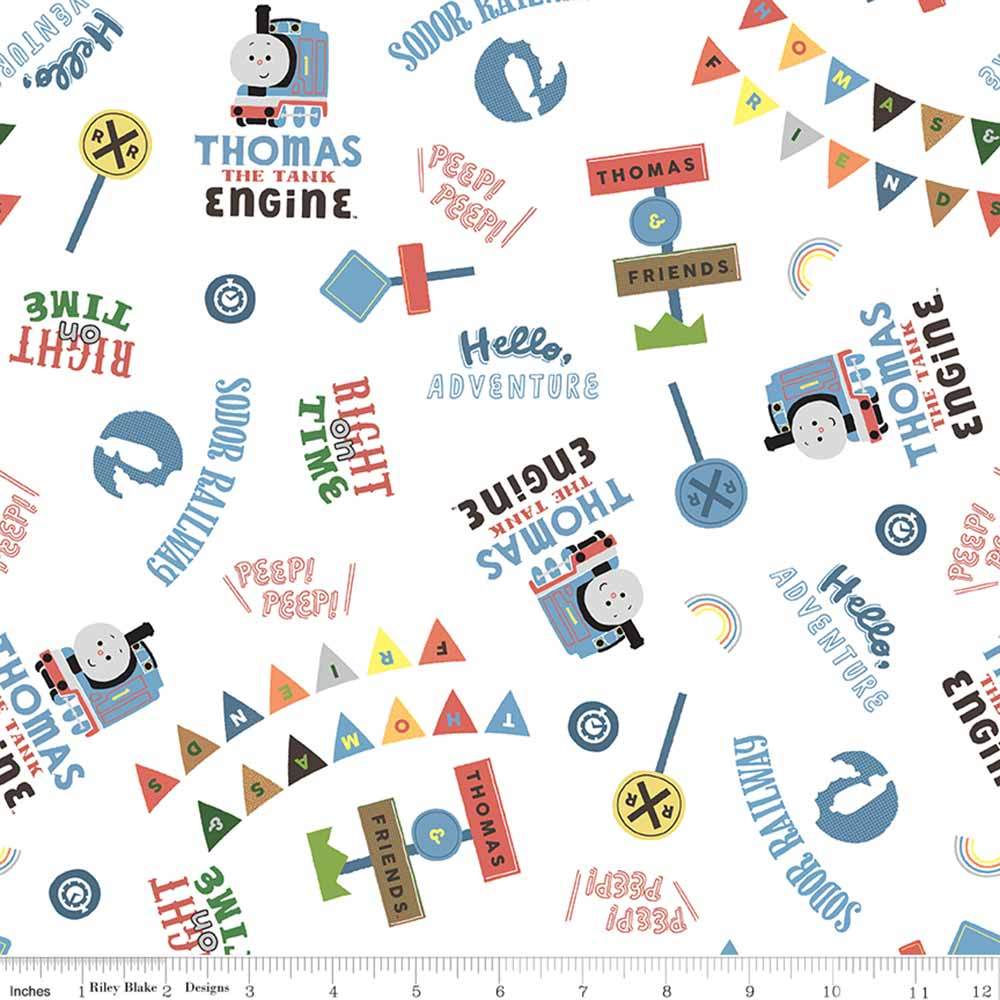 Riley Blake - Thomas & Friends - Sodor Railway - Railway Words - White - Yardage