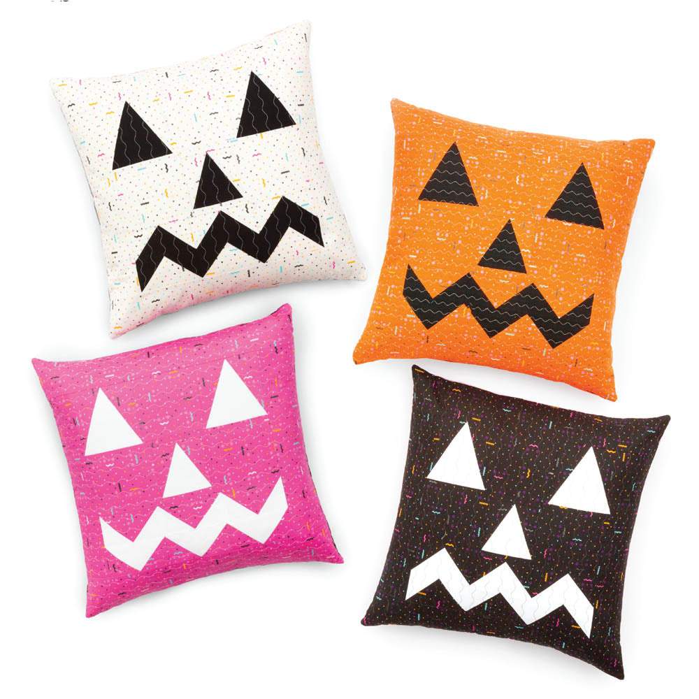 The Double-Sided Jack-O-Lantern pillow pattern by Elise Lea will help you create fun and spooky decor for the Halloween season.