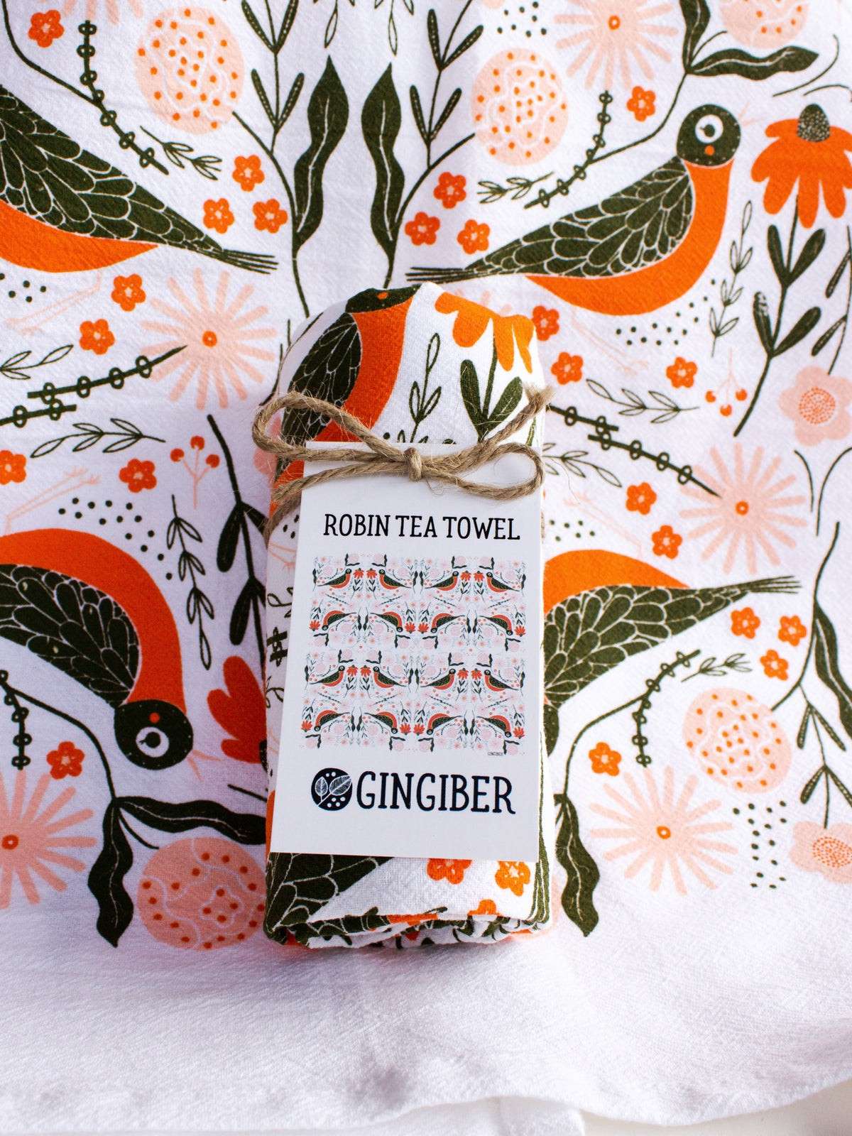 Gingiber's enchanting robin pattern is beautifully screen-printed on this oversized flour sack cotton tea towel! Our tea towels are both functional for the kitchen and vividly striking to display.100% flour sack cotton, Machine-washable, 24×26 inches, Includes a hanging loop, Screen printed in Wisconsin