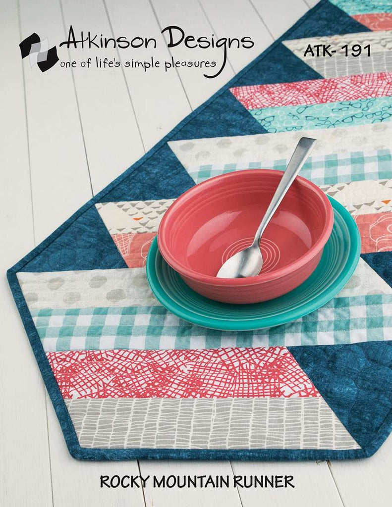 Cool mountain streams are framed by mountain ranges in this scrappy table runner. Finished size: 15in x 46in. Use 2-1/2in strips or fat eighths.