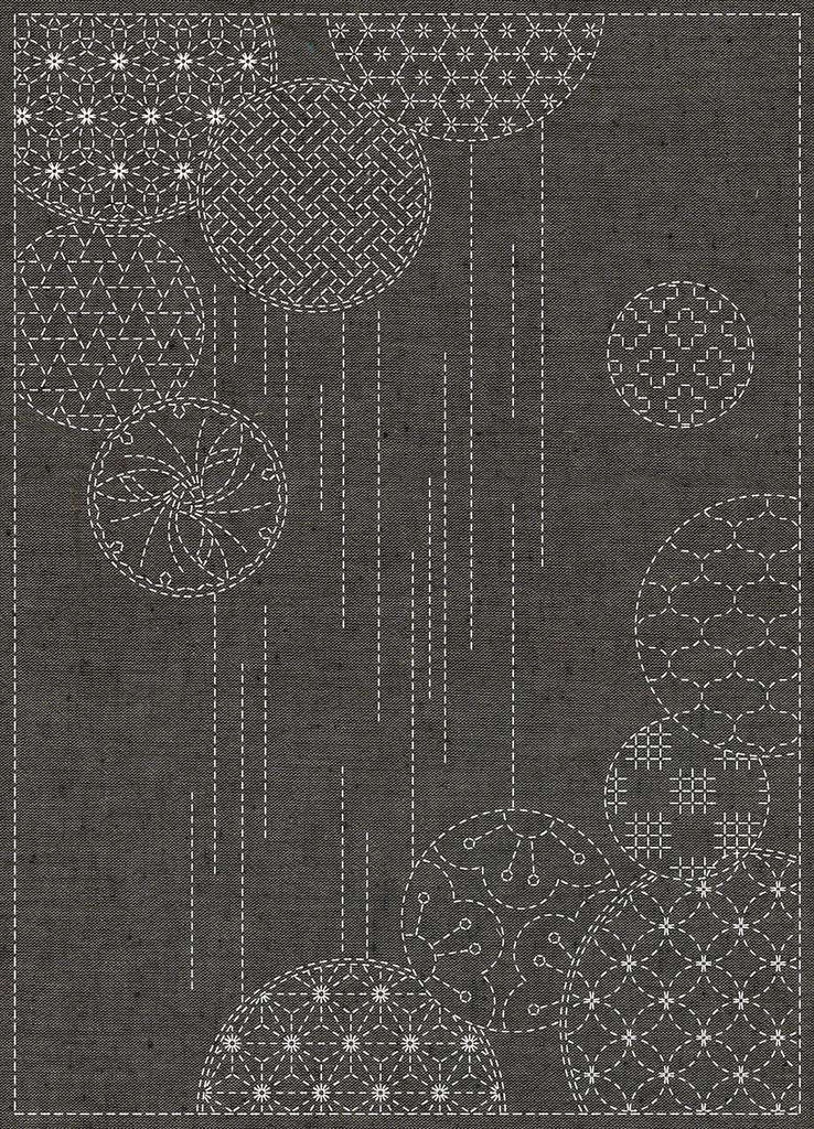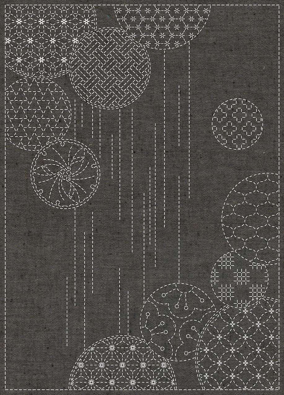 Sashiko design hand-printed with water-soluble ink on soft yarn-dyed nep fabric.