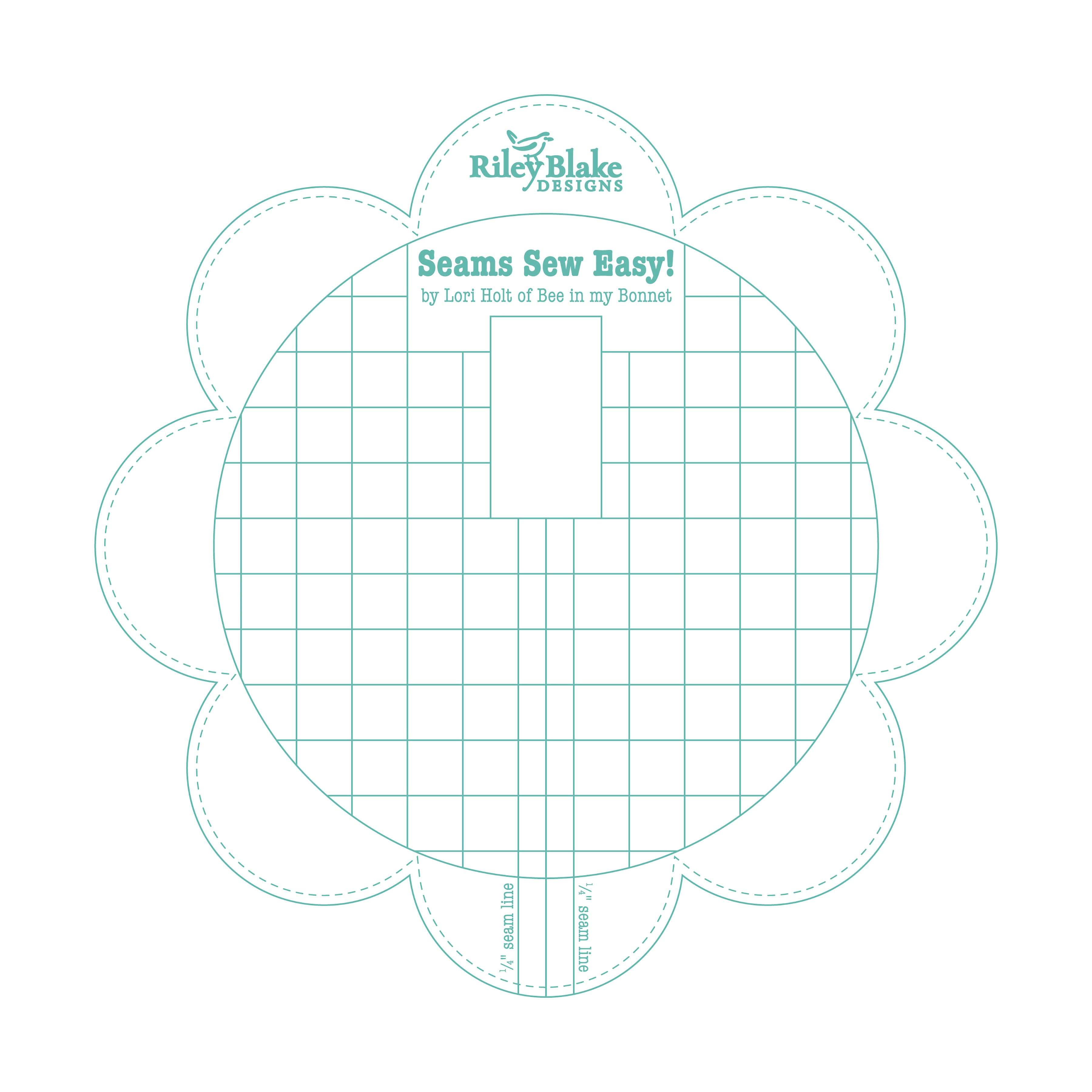 New and improved! The center is now precut to give you a smooth surface for sewing. Lori Holt designed her Seams Sew Easy™ Seam Guide for an accurate 1/4" seam and for constructing easy corner triangles. This tool saves time by not having to mark lines on your fabric when sewing half square triangles, flying geese or snowballs. The center circle of the guide is also marked with 1/2" grid lines for a wider seam allowance. This is a seam guide that temporarily adheres to the bed of any sewing machine. These grid lines also help to ensure correct placement when adhering to your sewing machine bed.