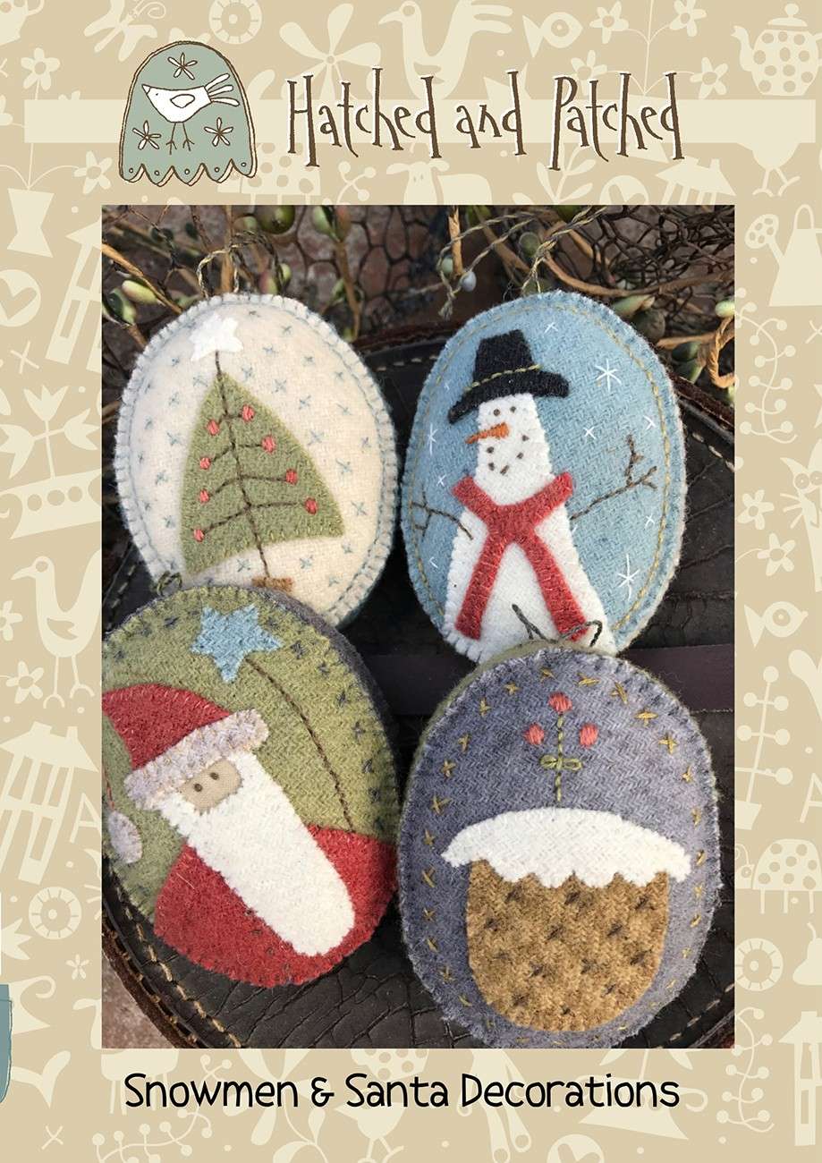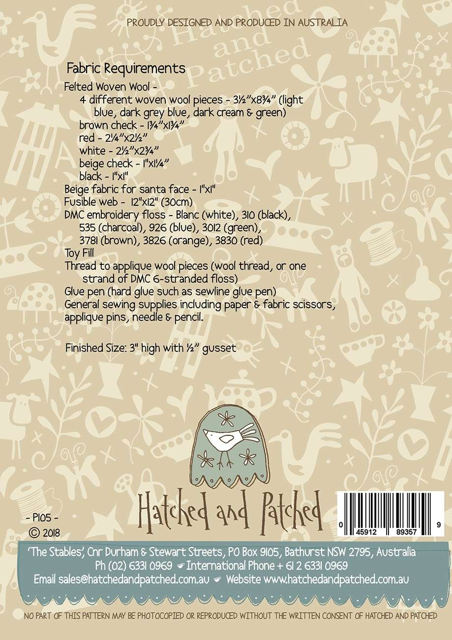 The pattern includes four different designs to create! Using woven wool applique, the baubles are done entirely by hand. Finished size: 3in high with 1/2in gusset