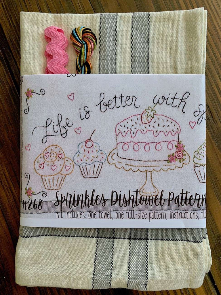 Kit includes100% cotton Dunroven Towel in custom gray, DMC floss for embroidery, full size pattern page with color guide and pink ricrac. This item is an easy project for embroidery clubs or Block (dishtowel) of the Month clubs.