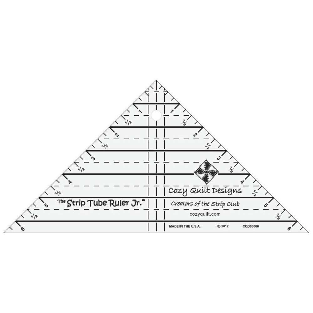 Junior has all the talents and magic of the original Strip Tube Ruler #CQD05001, but comes in a smaller, more convenient size. Junior is perfect for making blocks 6-1/2in or smaller. Junior is also wonderful for squaring up any blocks that have a diagonal seam with just one cut.
