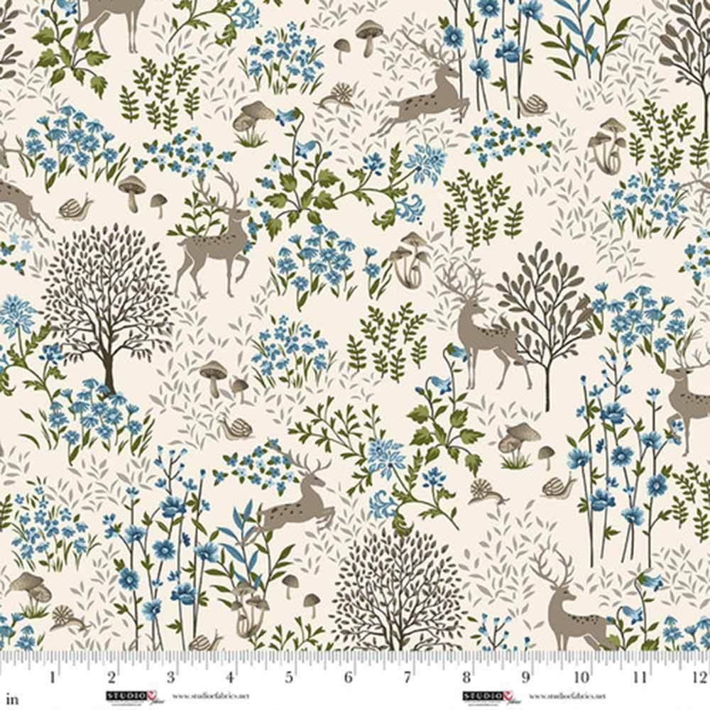 Studio E Fabrics - Ashdown Forest by Chelsea DesignWorks - Deer Scenic - Pale Ecru - Yardage
