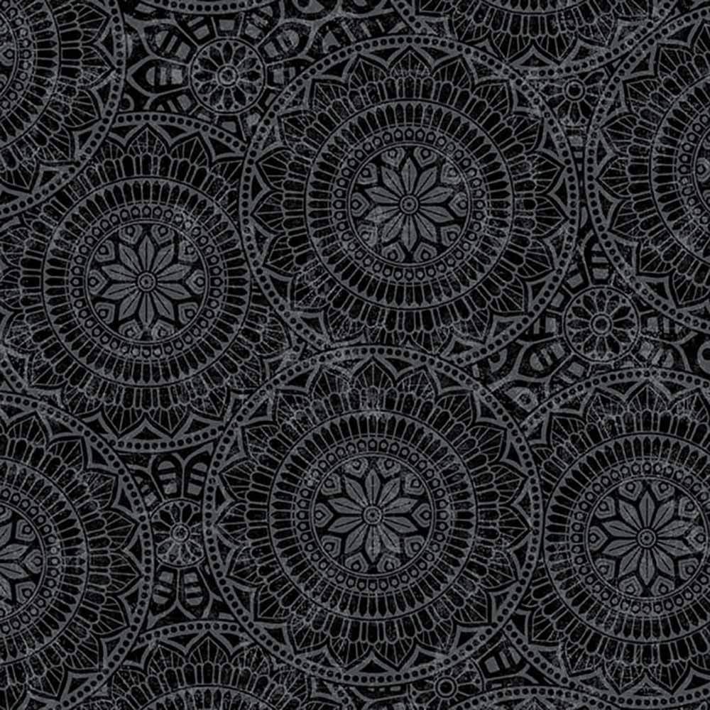 Studio E. - Vespa 118" Digital Print - Tossed Mandalas - Black - 118" 3-Yard Back Pack