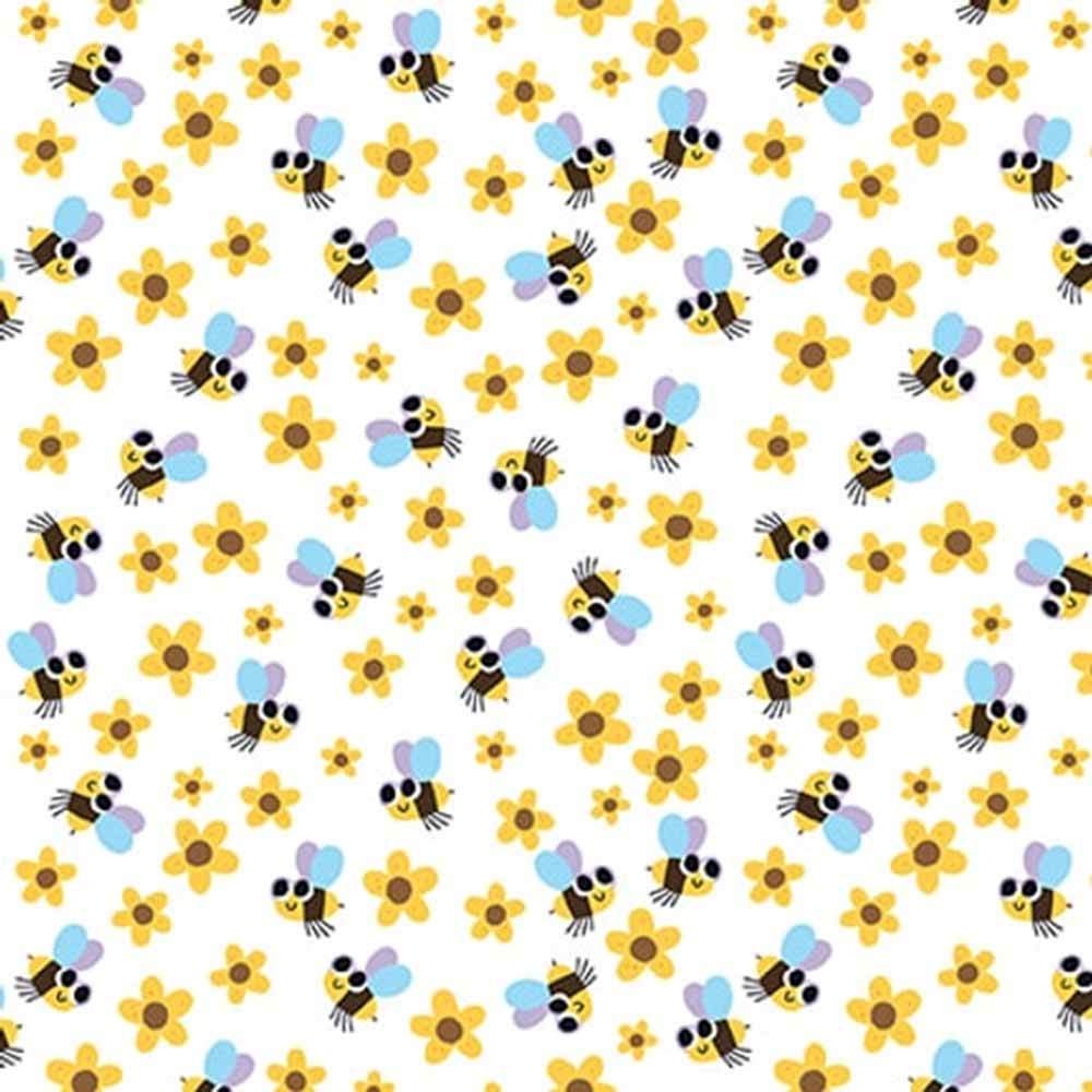 StudioE Fabrics - Let It Grow by Mel Matthews - Worker Bees - White - Yardage