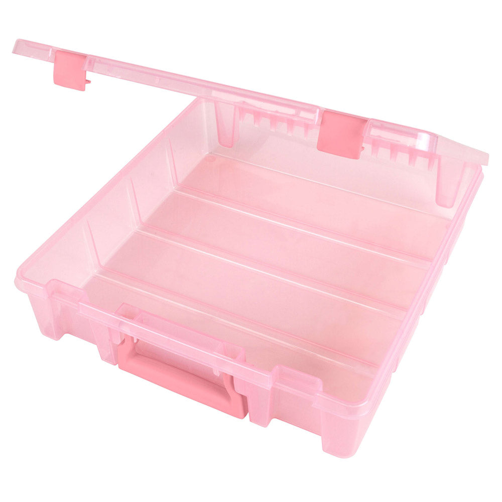 Extra depth allows for storage of larger, bulkier supplies Great for card stock, embossing folders, punches and tools of the trade! 3 Removable dividers to customize space Compatible with ArtBin accessories: 6820AG and 6951AB 15.25" x 14" x 3.5"