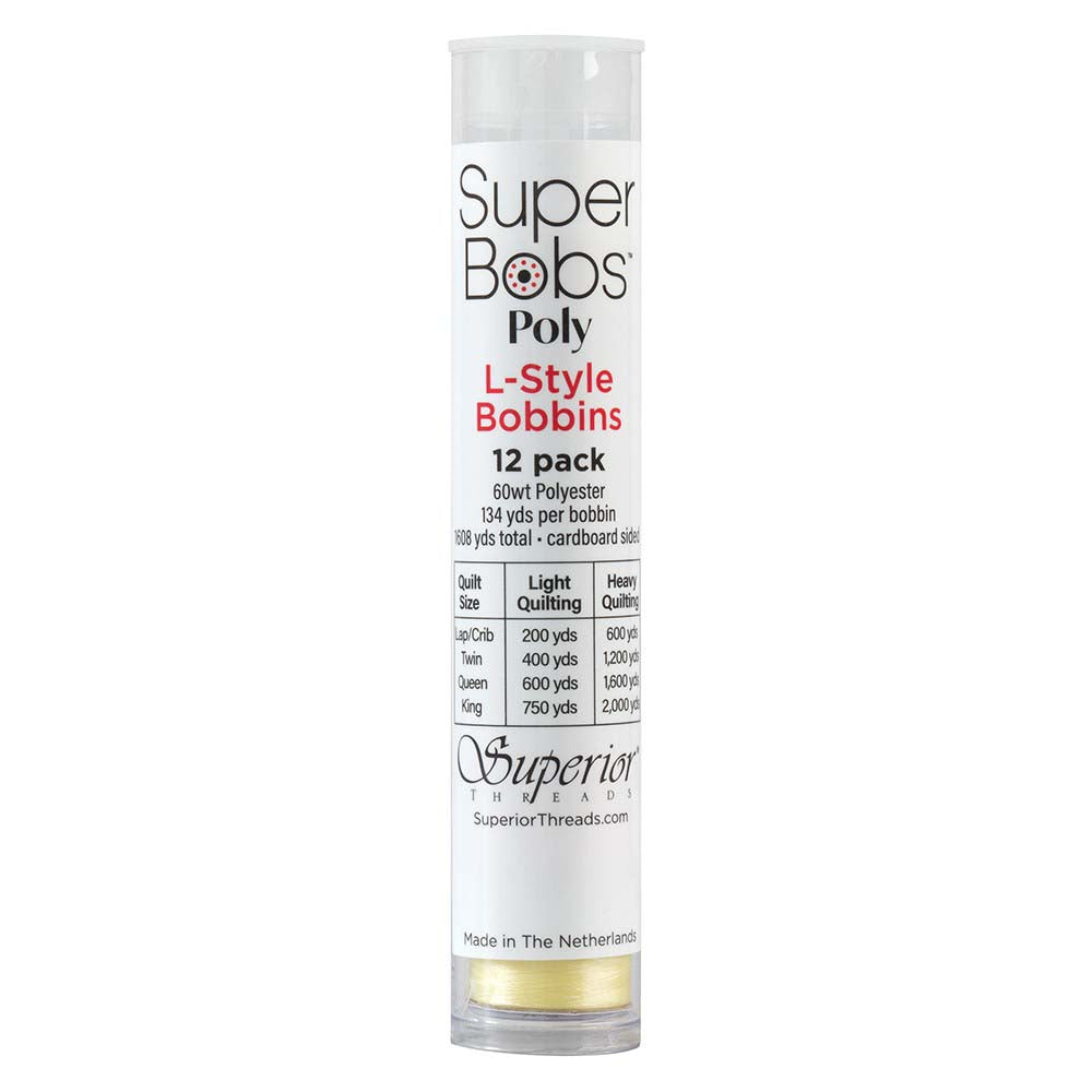 Tube of 12 cardboard sided bobbins. Designed for applique, bobbin thread, embroidery, and quilting. L Style Bobbins