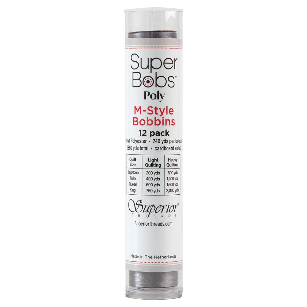 SuperBobs Polyester Bobbin 12pk M-Style Gray