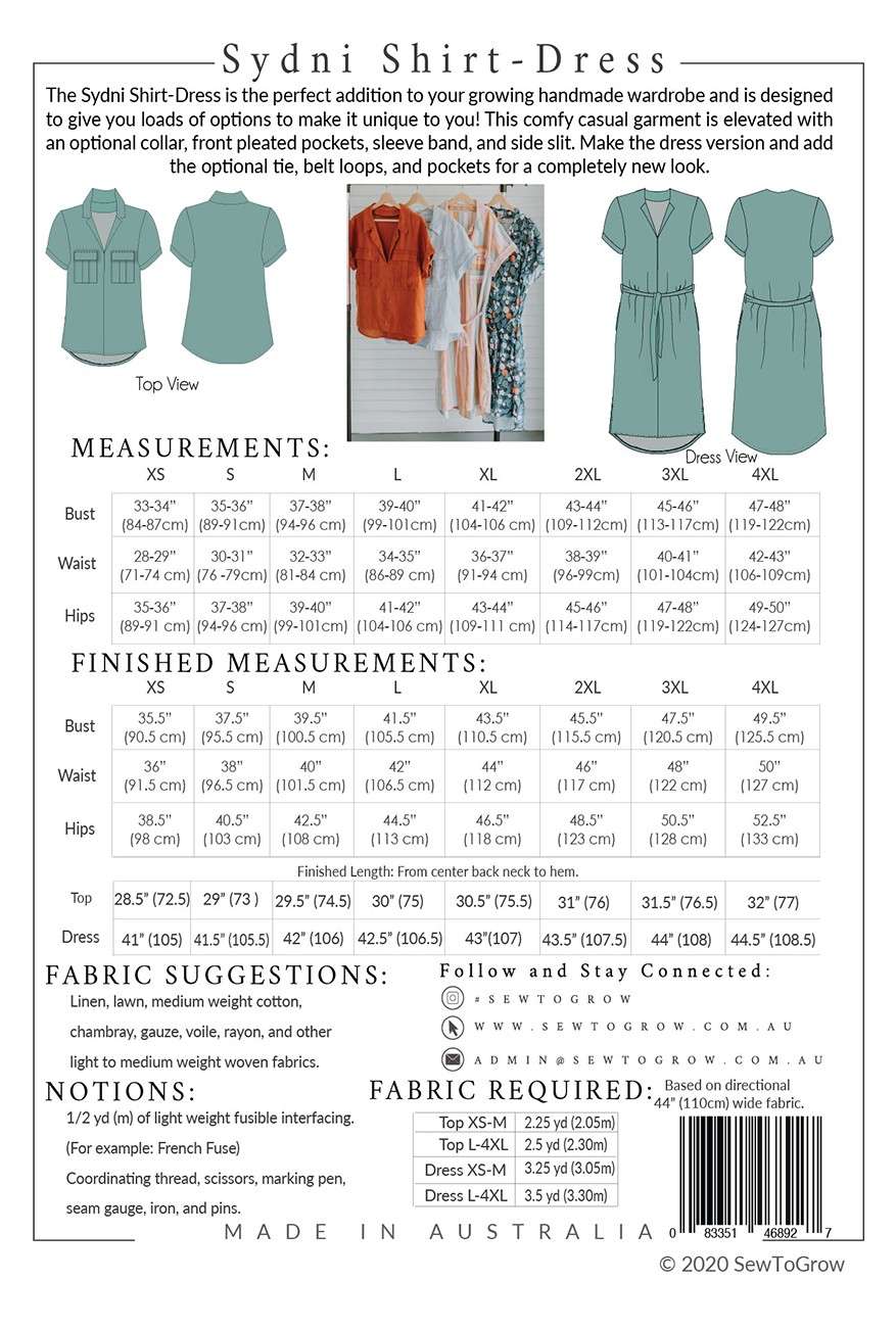 The Sydni Shirtdress woman's sewing pattern is the perfect addition to your growing handmade wardrobe and is designed to give you loads of options to make it unique to you! This comfy casual garment is elevated with an optional collar, front pleated pockets, sleeve band, and side slit. Make the dress version and add the optional tie, belt loops, and pockets or make the Shirt version for a quick and stylish top. Patterns are size from XS to 4XL and feature full color instructions, large paper pattern pieces, and a convenient folder to hold all of your notes and pattern pieces.