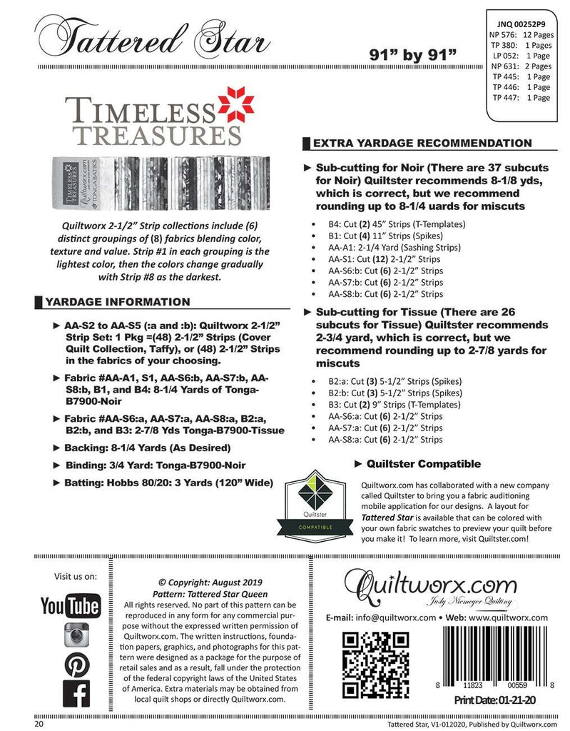 Tattered Star is a foundation paper pieced pattern. Size 91 x 91