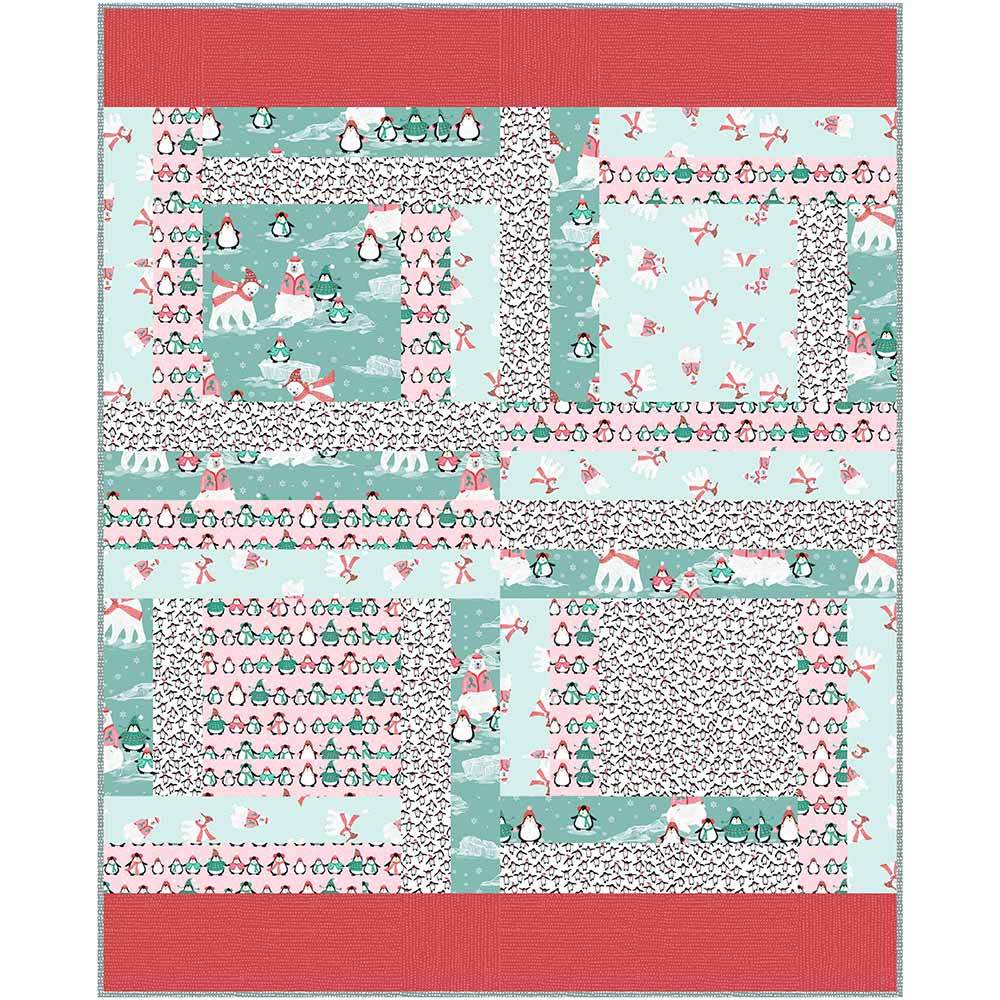 So playful, charming and 'cool'! The Car Quilt Quick Kit features the Sleigh It Ain't Snow fabric collection by Dear Stella. Prints include penguins and polar bears in scarves and hats set against against soft hues like glacier blue, white and pastel pink. A quick easy throw quilt to complete in a weekend or less. Finished size 34" x 42". Kit includes pattern by Keepsake Quilting plus fabrics for the top and binding. Backing available separately 1-1/2 yards x 44" wide recommended.
