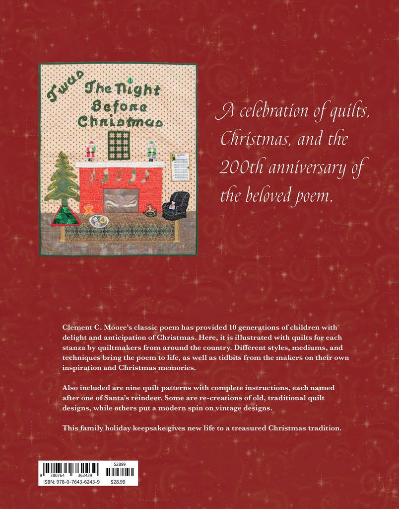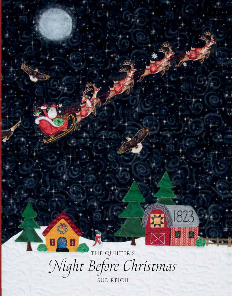 Quilts and Christmas are the perfect blend. This is a quilting-arts book for creative sewists who love and cherish the poem "The Night Before Christmas." This book commemorates the 200th anniversary of the writing in 1822 and publication in 1823 of this most notable holiday poem. The poem has provided 10 generations of children with delight and anticipation of Christmas. The poem, illustrated with 29 festive quilted scenes, offers a beautiful-to-read family experience, and nine antique and vintage quilts are patterned here, with complete instructions, to inspire today's quiltmakers to create their own holiday bed coverings. The nine patterns are appropriately named after the eight reindeer and, of course, Rudolph. Some patterns are re-creations from old, traditional quilt designs, while others put a modern spin on a vintage design. Some patterns can be hand-pieced, while others use fast, new, rotary-cutting techniques.