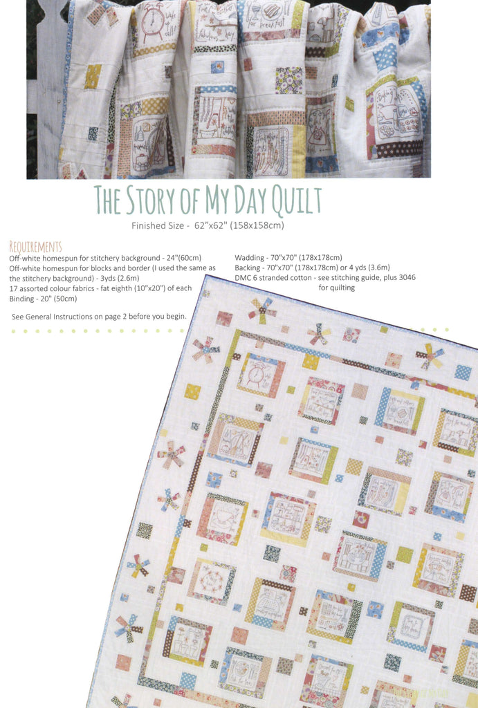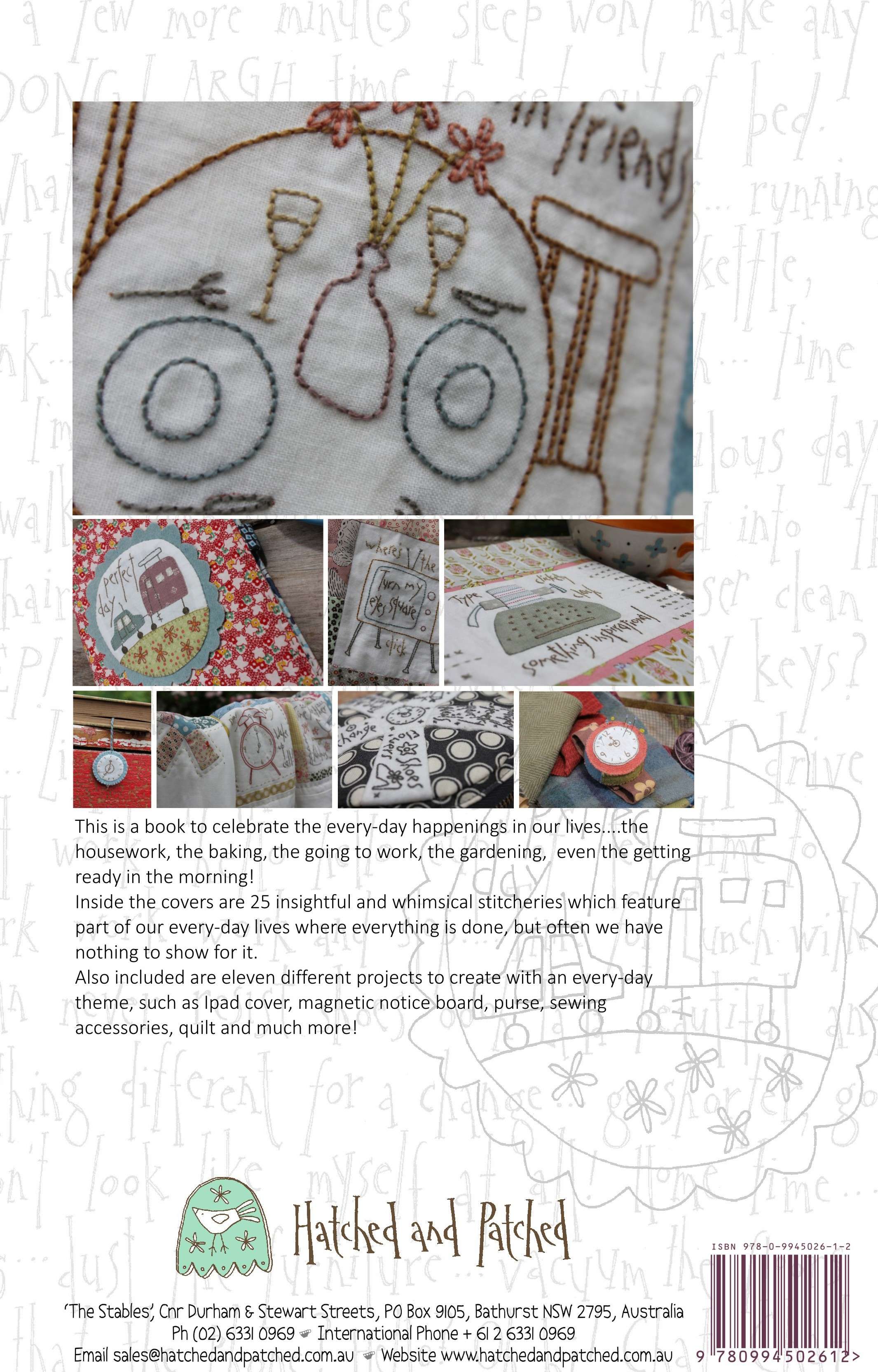 Book – 44 pgs This is a book about the everyday from waking up in the morning, doing the housework, catching up with friends, feeding the animals, this book has it all! There are 25 stitchery templates, and 11 projects to choose from including quilt, ipad cover, magnetic notice-board, purse, bag, case, watch pincushion, eye mask and more.