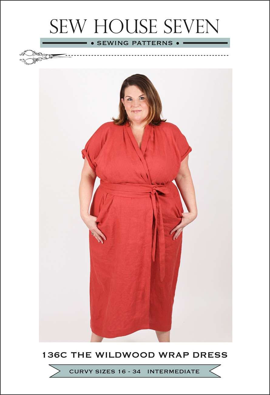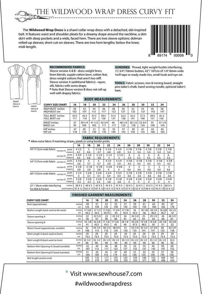 The Wildwood Wrap Dress is a shawl collar wrap dress with a detached, obi-inspired belt. It features waist and shoulder pleats for a dreamy drape around the neckline, a slim sirt with deep pockets and a wide, faced hem. There are two sleeve options - dolman rolled-up sleeves or short cut-on sleeves. There are also two hem lengths - below the knee and midi-length. Intermediate level. Curvy Sizes 16 - 34.