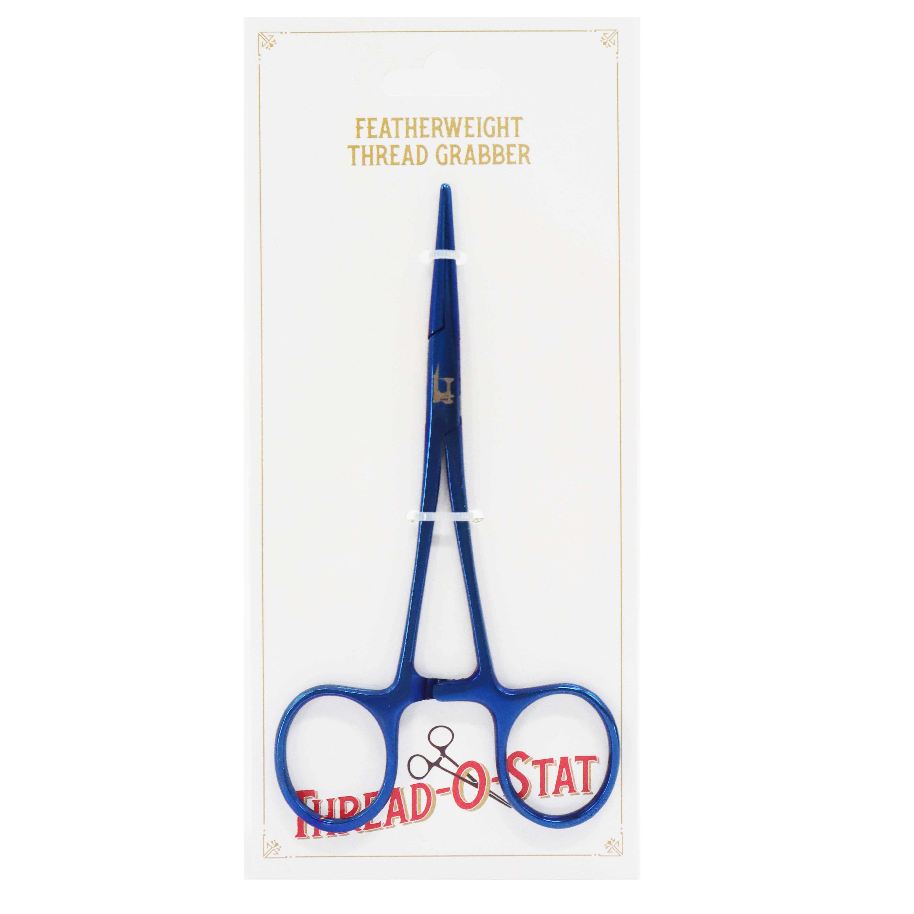 The Blue all-metal 6 inch, Thread-O-Stat Thread Grabber has a smooth jaw, so the thread is gripped tightly and securely as you clamp the handles together. Unlike a typical "hemostat" which has a toothed or jagged jaw (preventing a firm grip), the Thread-O-Stat is more like tweezers, only better! You will be able to grab a hold of that little thread as you take the proper steps to remove it and the Thread-O-Stat won't let go! The Thread-O-Stat is also quite helpful for removing paper from the back of your paper-piecing projects, or turning things right side out, whatever you need to grab in a tight spot - an all around handy tool to have in your sewing room!