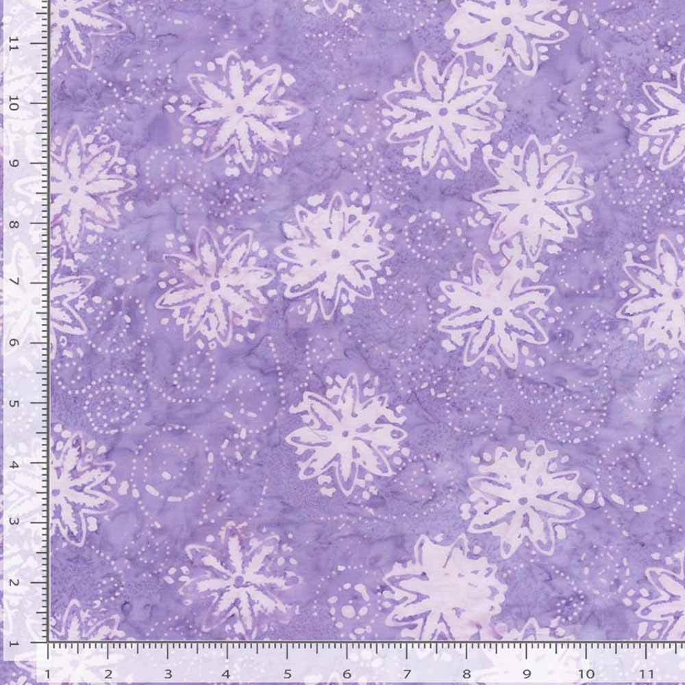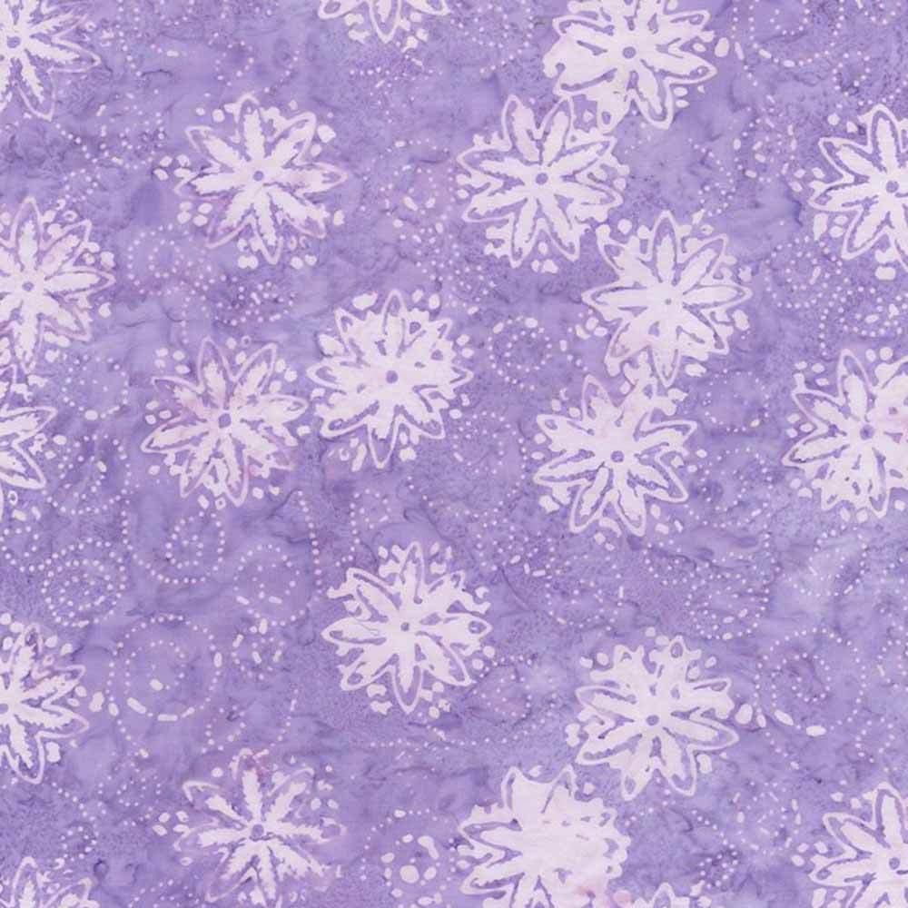 A pinwheel style snowflake design is featured in the Tonga Frost Batik in Purple by Timeless Treasures.