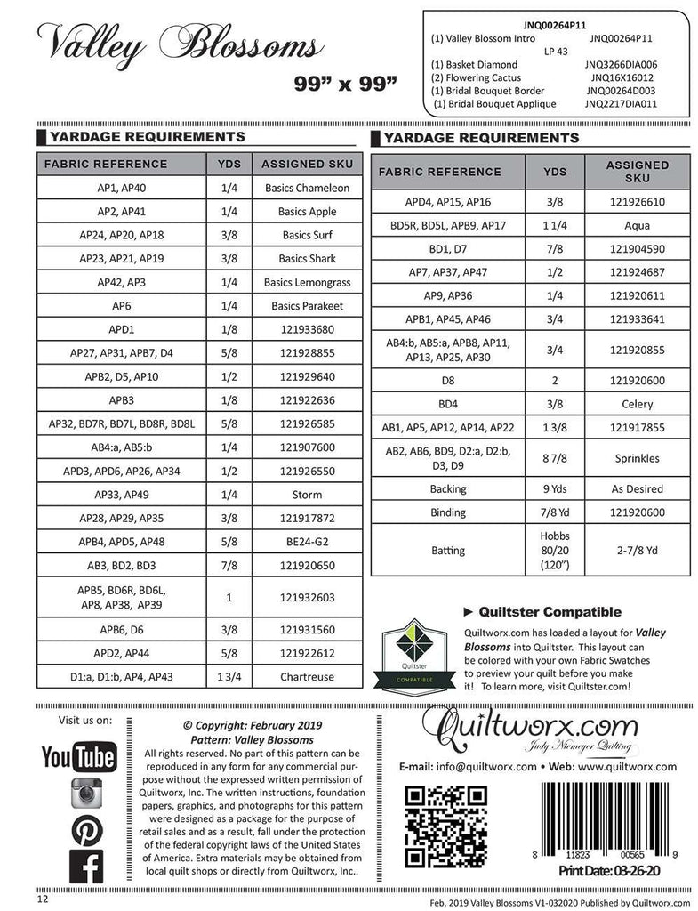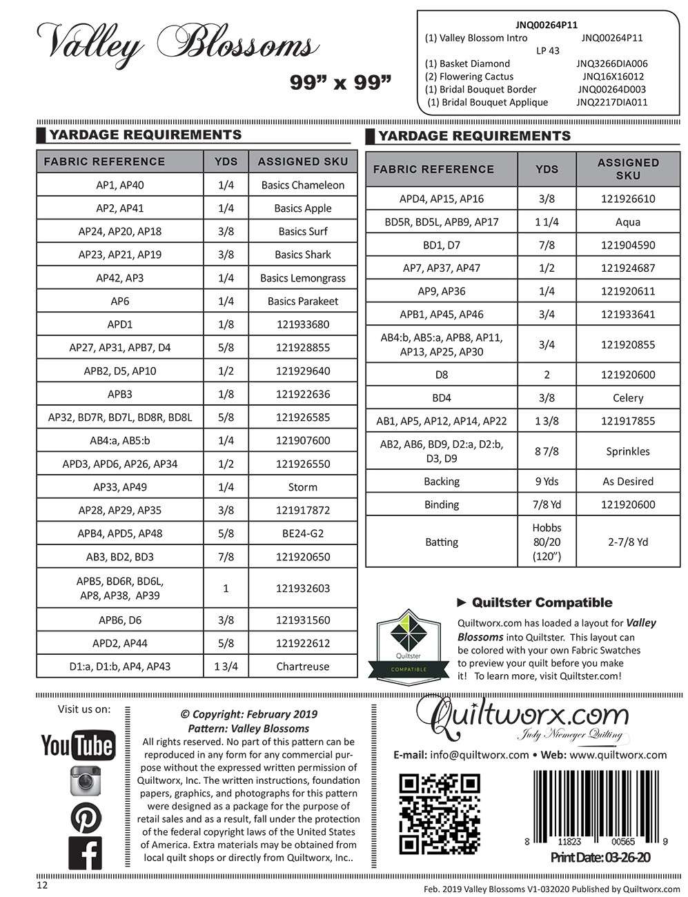 Valley Blossoms is Quiltworx.com’s second Worx Sessions pattern, meaning that it comes with a free Youtube training video series for you to follow along with Judy Niemeyer, step by step. We also have a special guest instructor for this design, Vanessa Fromm, from Fabric Confetti. Vanessa will teach you digitized embroidery techniques that can be used to stitch on the applique designs if you would rather embroidery instead of turn under applique.