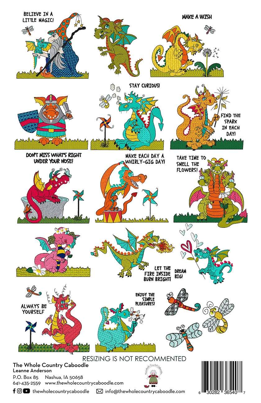 Includes 14 different dragons & 3 dragonfly designs, color sheets, & quilt pattern.