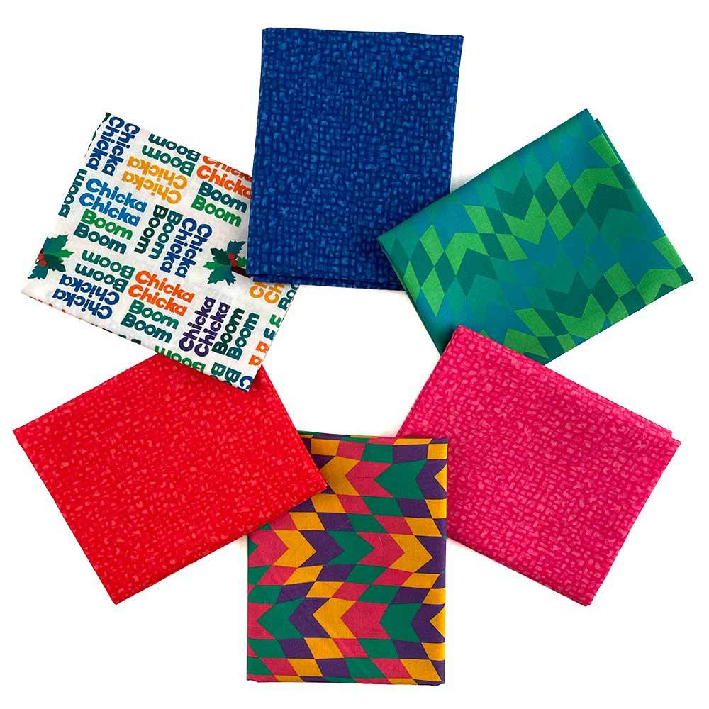 Based on the popular childrens book, the Chicka Chick Boom Boom fabric collection will amaze and delight! Fabrics designed by Bill Martin Jr., John Archambault & Lois Ehlert for Windham Fabrics. Medley includes 6 fat quarters.