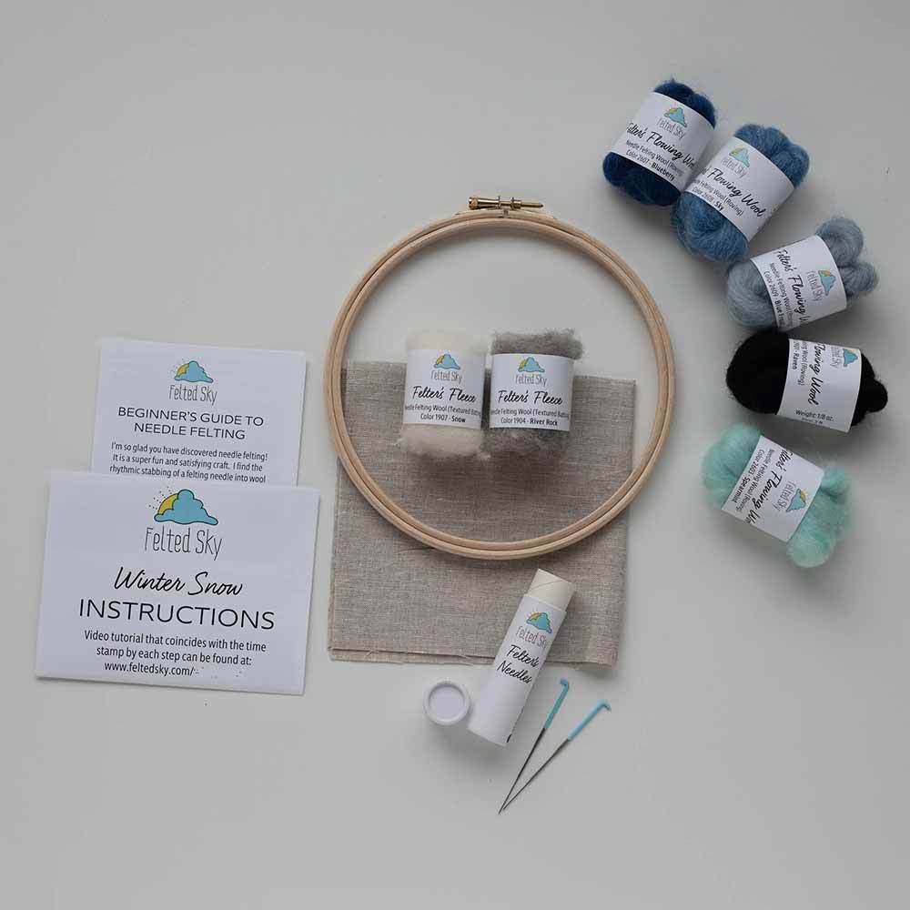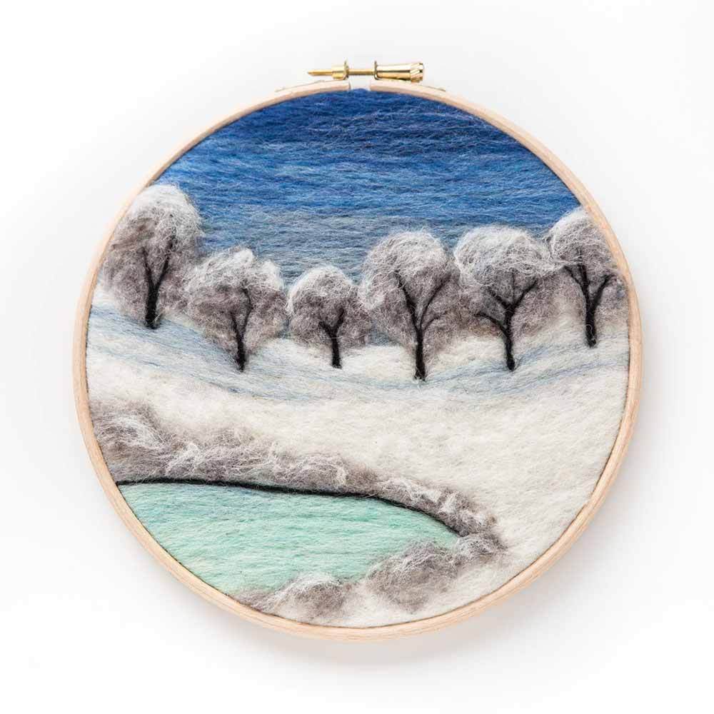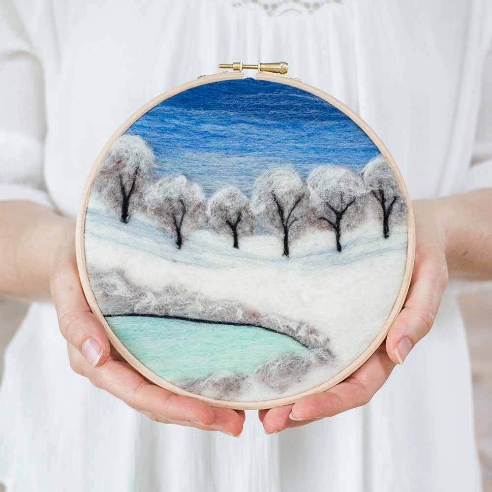 This wool landscape is a very satisfying project. Easy enough for a beginner, but still enjoyable for an experienced felter. This kit makes a great gift for a crafty friend or family member, or treat yourself and enjoy the process of creating something beautiful. Hang it in a special place or give it away - nothing says âI love youâ like handmade art.