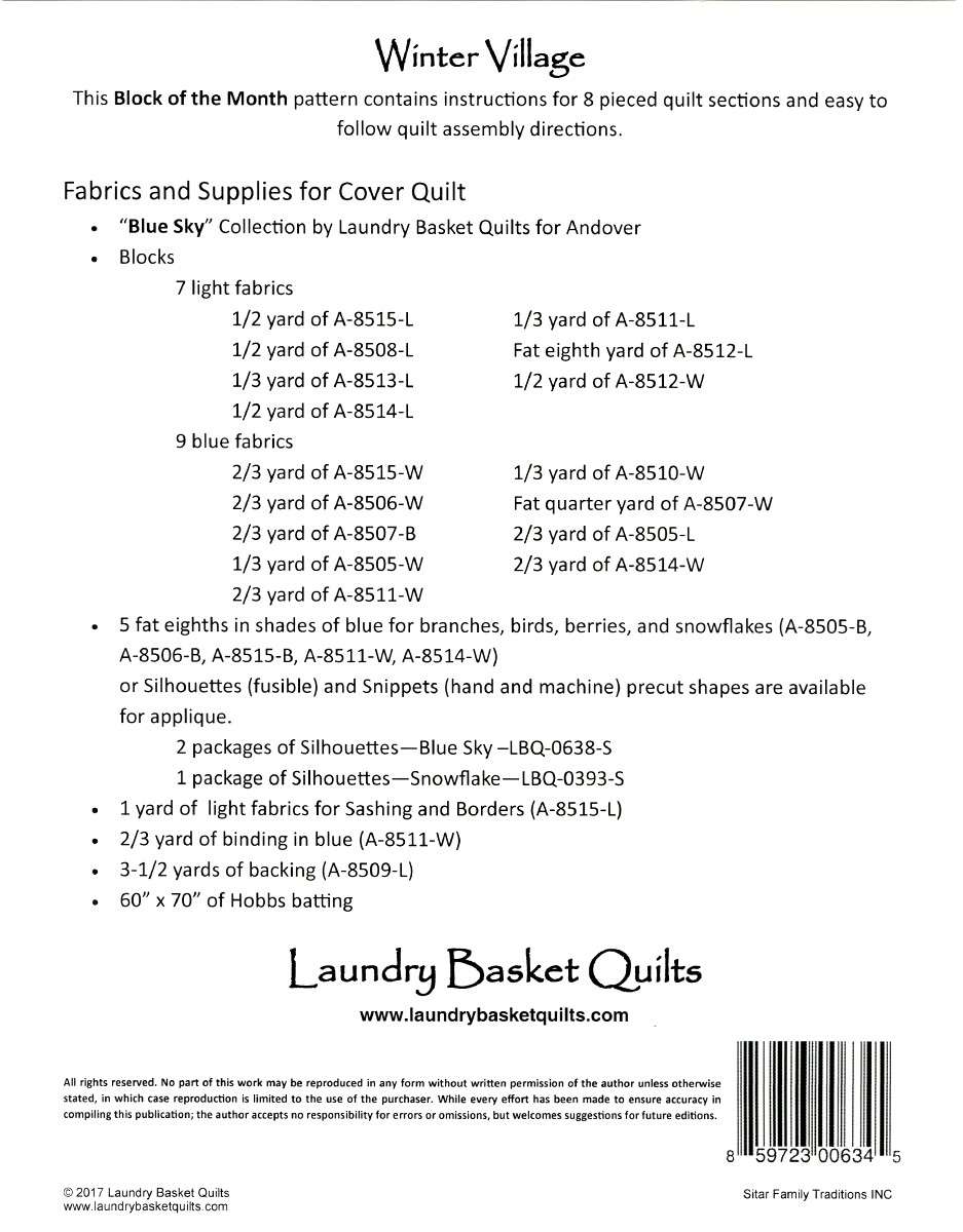 Traditional pieced quilt with applique accents. Finished Size: 53 1/2 inches x 66 inches. Fabric not included.