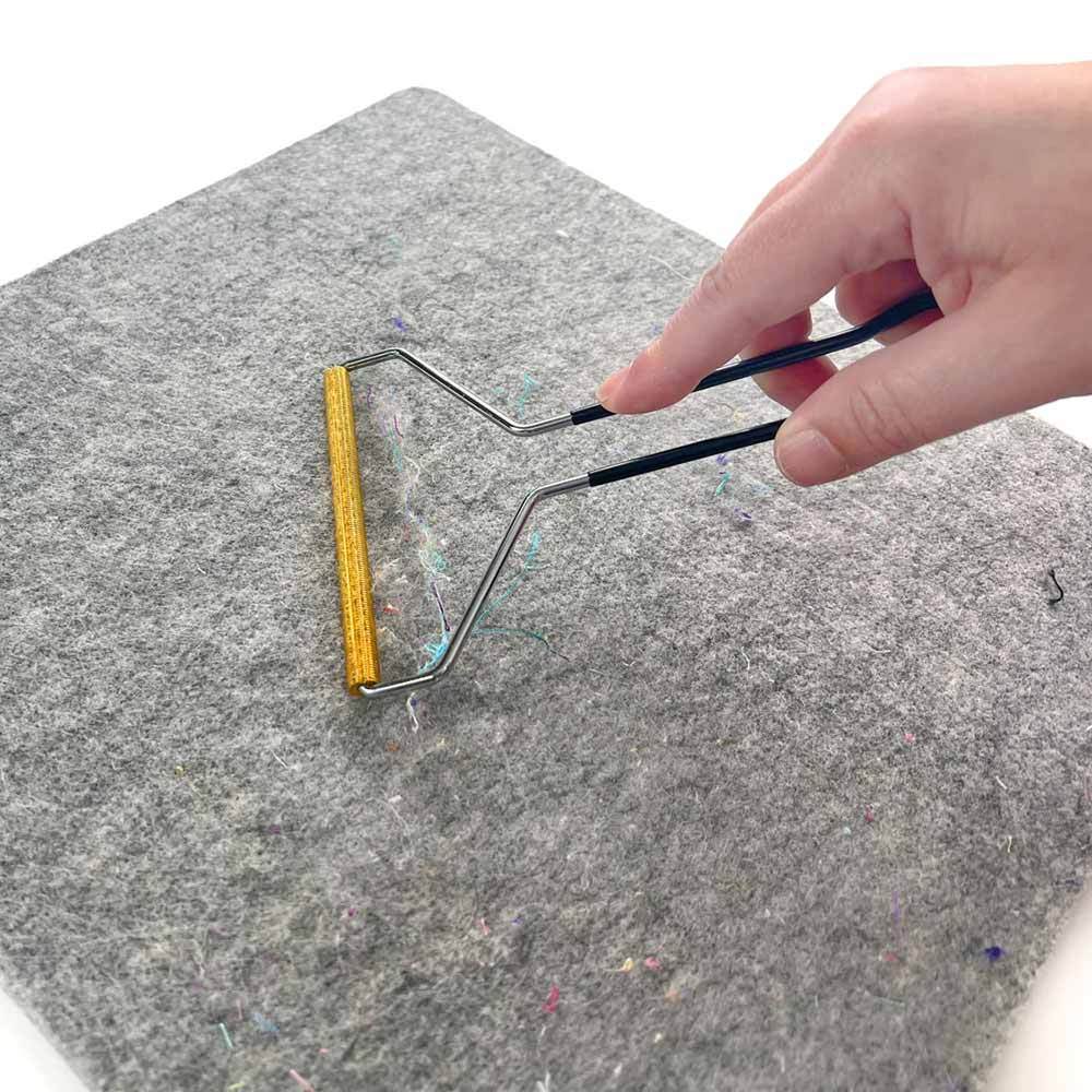 Introducing the Gypsy Quilter Wool Mat Cleaning Tool, a must-have item for anyone who wants to keep their wool mat looking like new. This clever tool features a cylindrical cleaning blade, which you can simply drag across the surface of your wool mat to remove stray threads, lint, pet hair, and other debris that may have accumulated over time.
