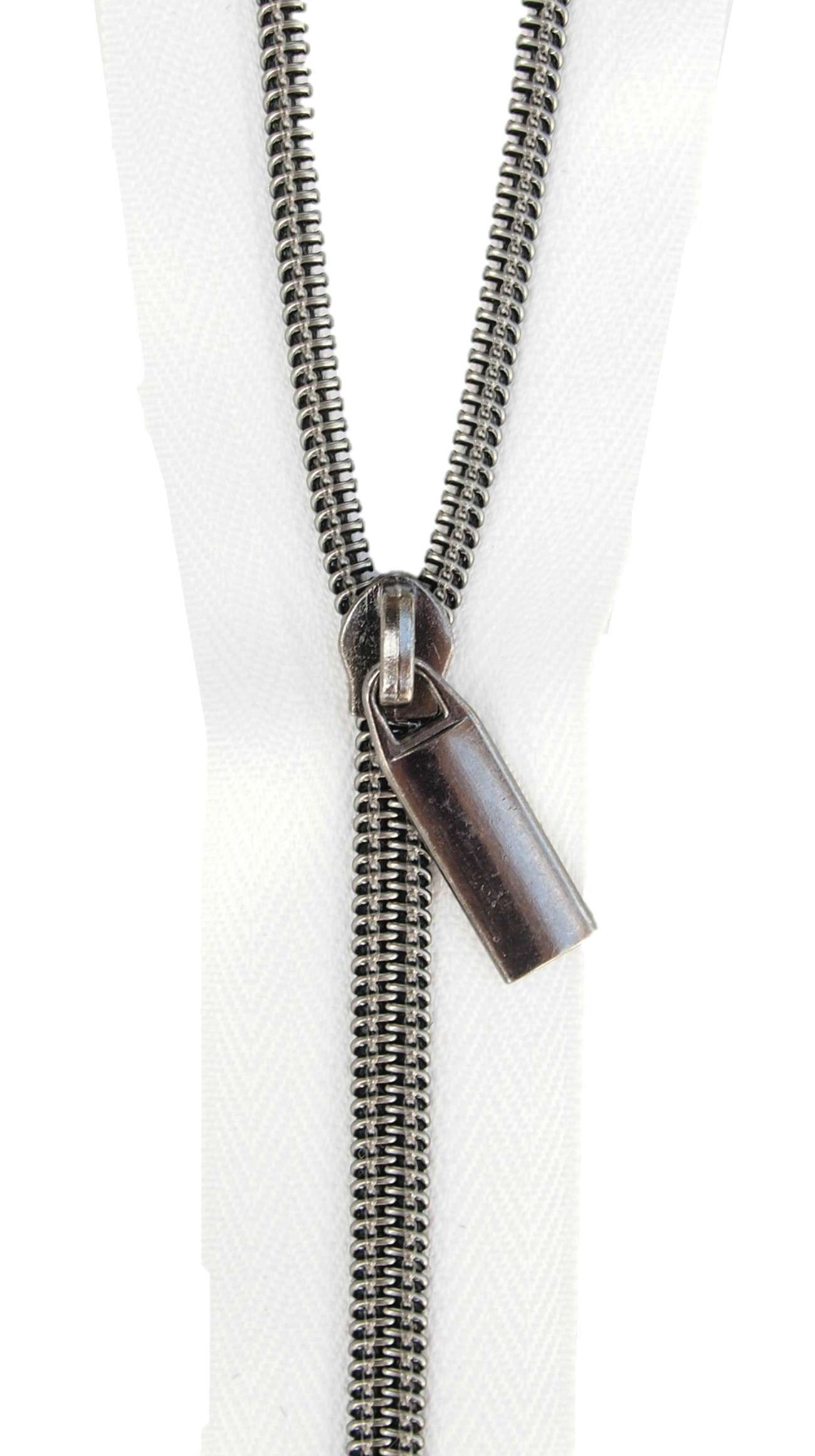 Zippers By The Yard White Tape Gunmetal Teeth #5