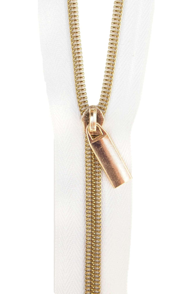 Zippers By The Yard White Tape Light Gold Teeth #5